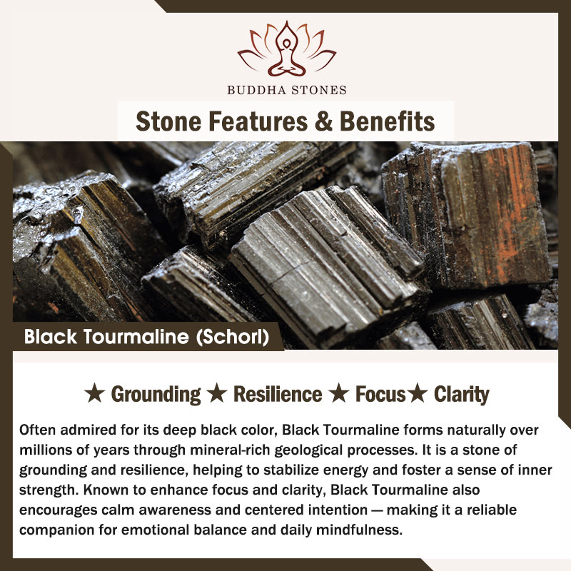 Often admired for its deep black color, Black Tourmaline forms naturally over millions of years through mineral-rich geological processes. It is a stone of grounding and resilience, helping to stabilize energy and foster a sense of inner strength. Known to enhance focus and clarity, Black Tourmaline also encourages calm awareness and centered intention — making it a reliable companion for emotional balance and daily mindfulness.