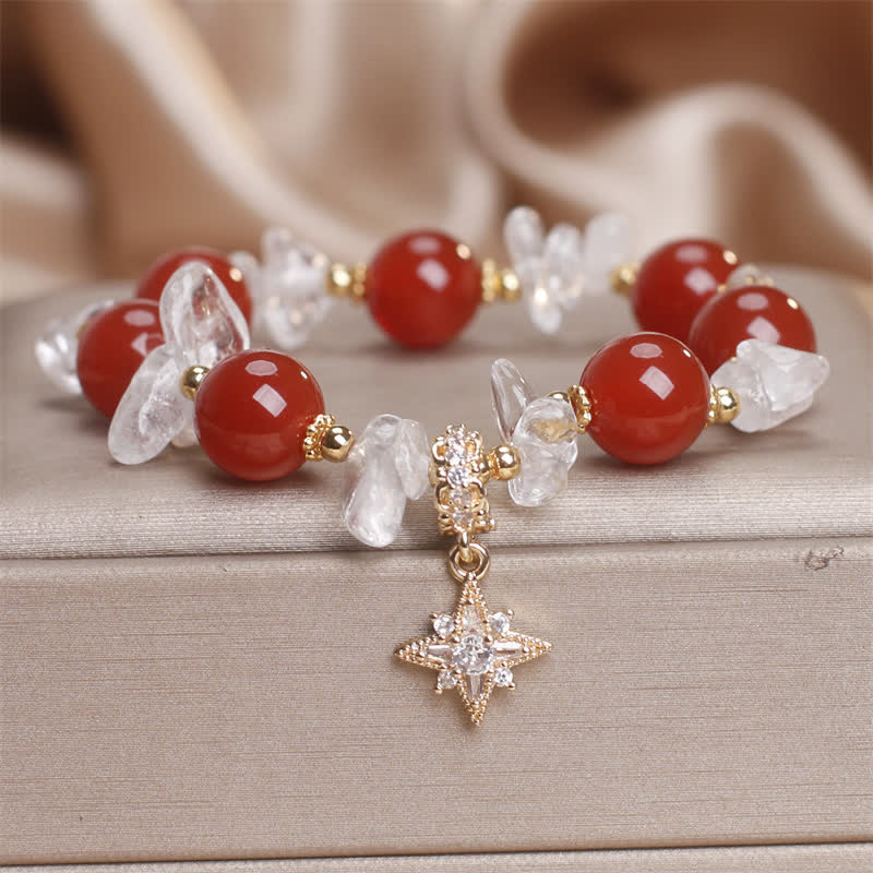 FREE Today: Confidence and Healing Natural Red Agate Clear Quartz Hexagram Charm Bracelet