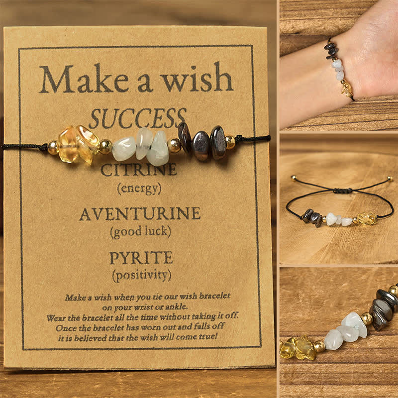 You will receive the Make a Wish Success Citrine Green Aventurine Pyrite Rope Card Bracelet: protect yourself and your loved ones from negative energy.
