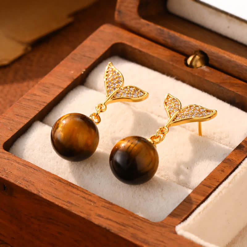 FREE Today: Protection and Healing Tiger Eye Round Bead Fish Tail Irregular Design Earrings