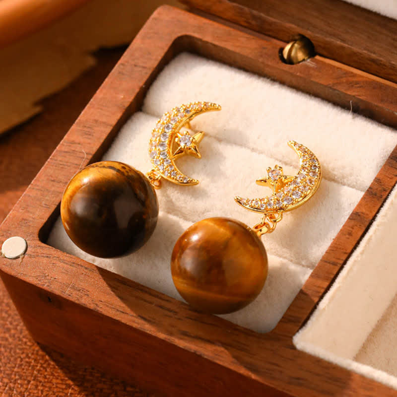 FREE Today: Protection and Healing Tiger Eye Round Bead Fish Tail Irregular Design Earrings - Moon(925 Sterling Silver Posts) - image 2