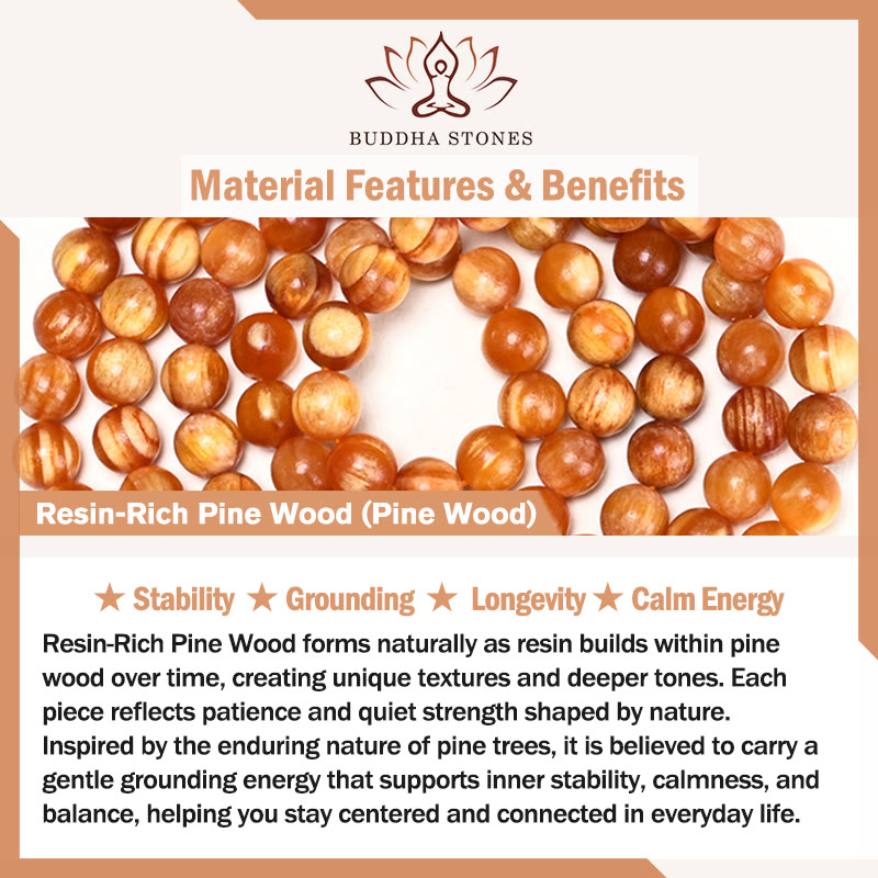 Buddha Stones 108 Beads Resin-Rich Pine Wood Calm Energy Mala